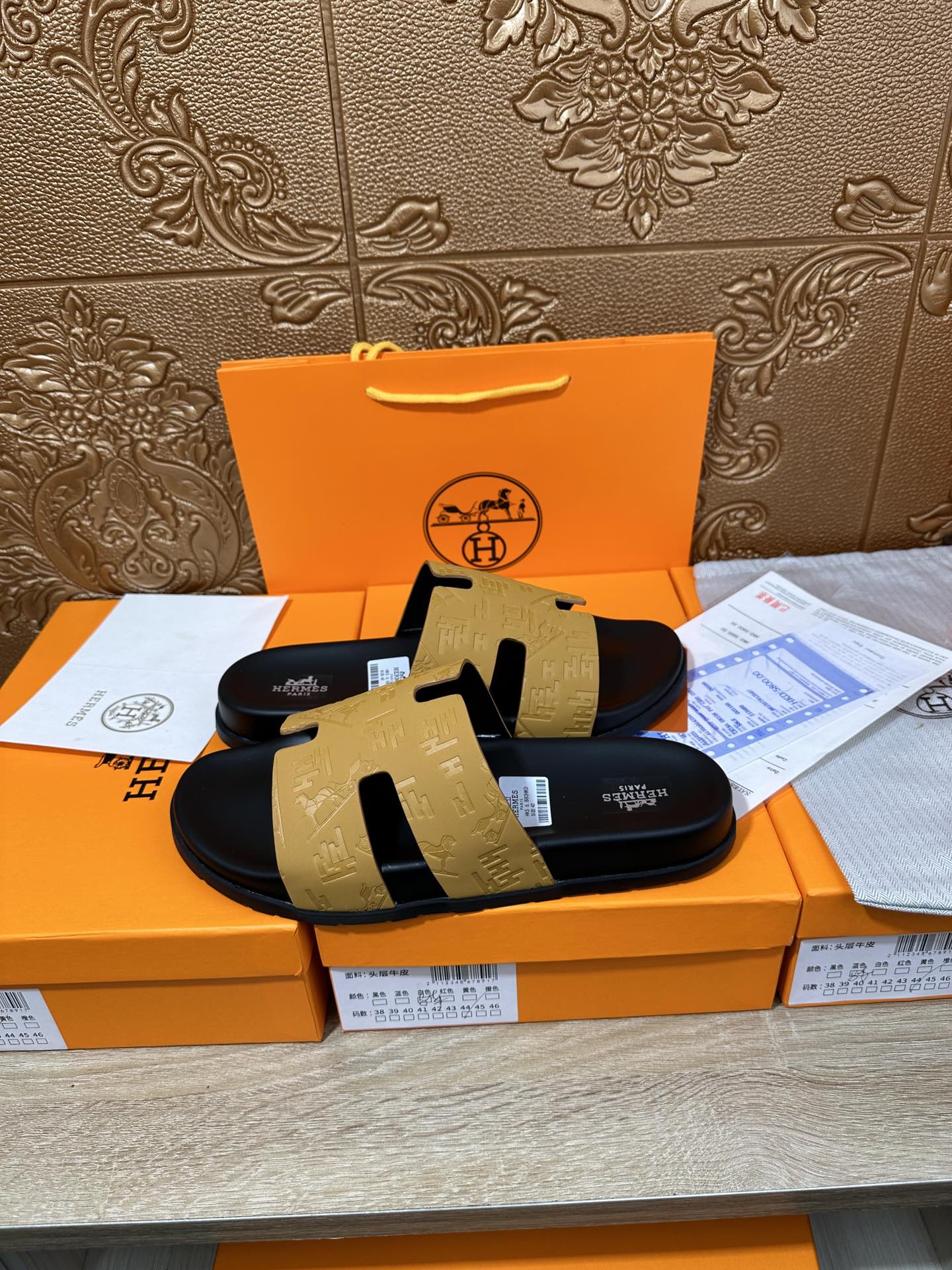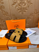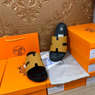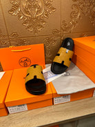 HM IZMIR SLIPPER SAFFRON AND BLACK CALFSKIN