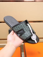 HM ORAN SANDAL BLACK AND SAPPHIRE LAMBSKIN