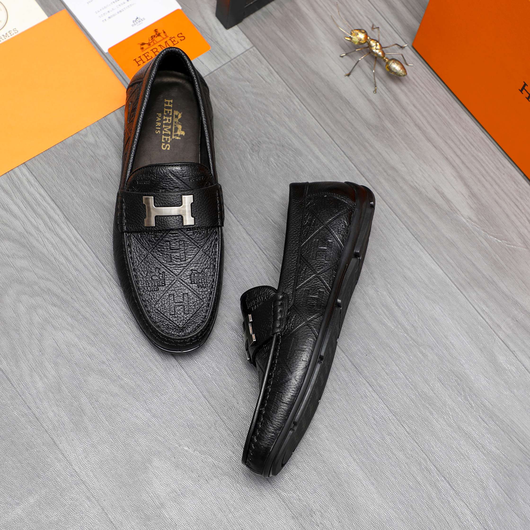 HM SQUARE MOTIF LOAFER BLACK EMBOSSED CALFSKIN