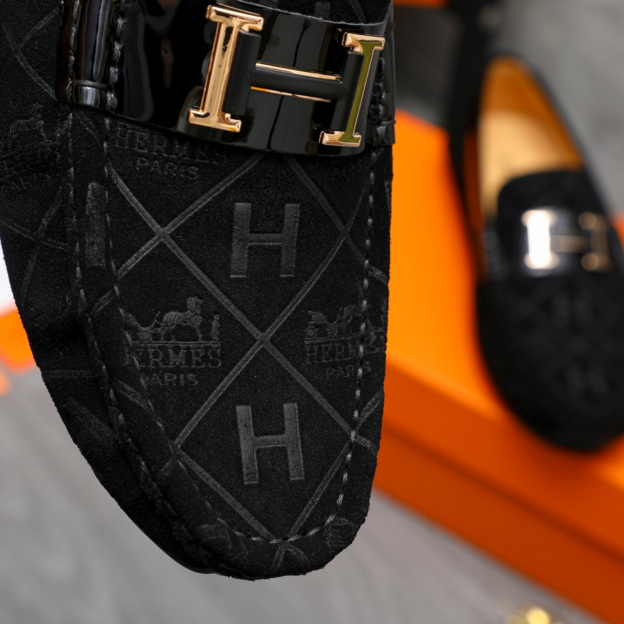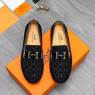 HM SQUARE MOTIF LOAFER BLACK EMBOSSED SUEDE