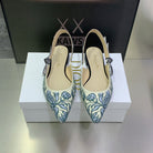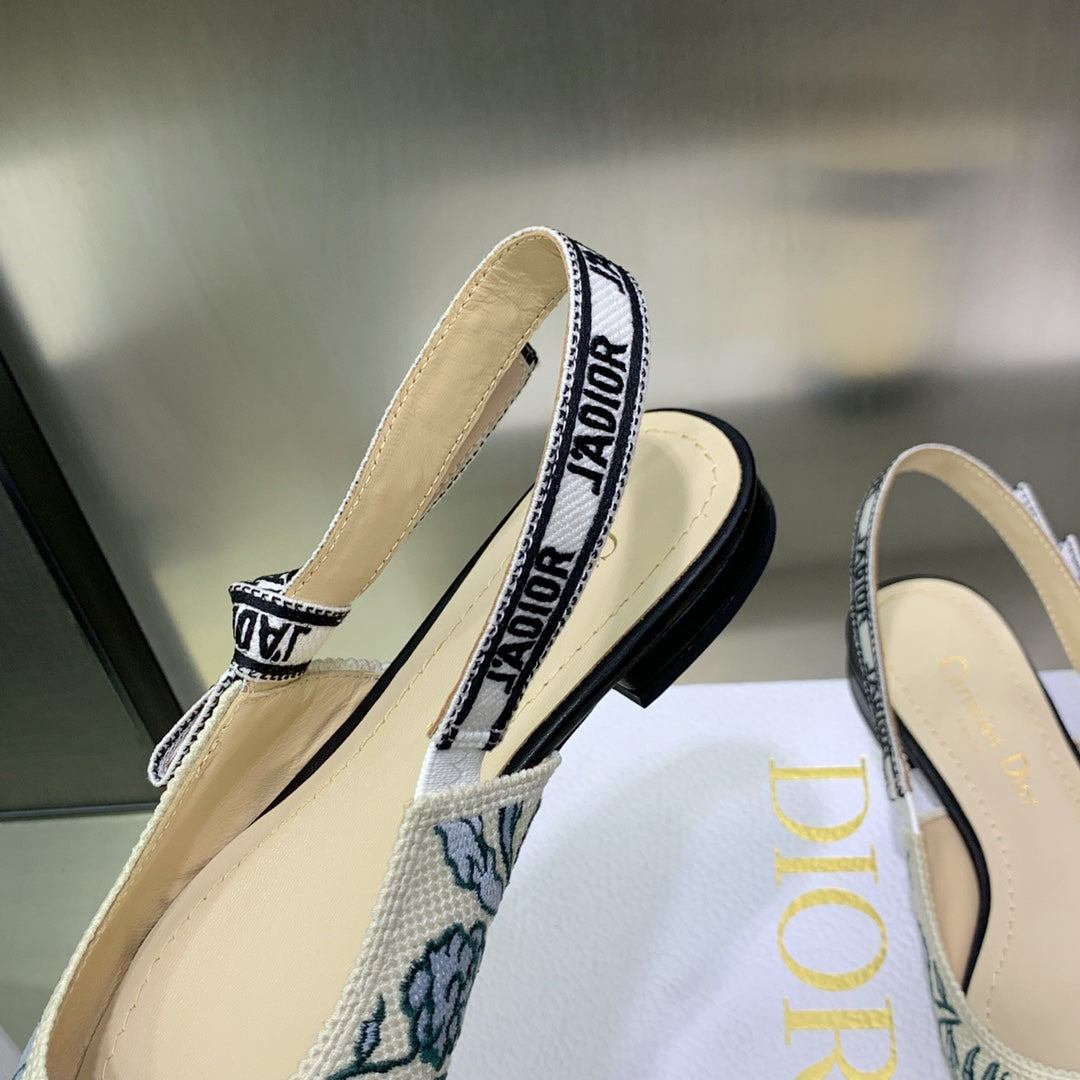 JAdior Slingback Flat Duck Blue Embroidered Cotton with Gold-Tone Metallic Thread