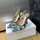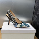 JAdior Slingback Pump 95 Pastel Midnight Blue Multicolor Embroidered Cotton with Toile de Jouy Mexico Motif