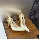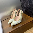 JAdior Slingback Pump 95 White and Gold-Tone Toile de Jouy Mexico Embroidered Cotton with Metallic Thread