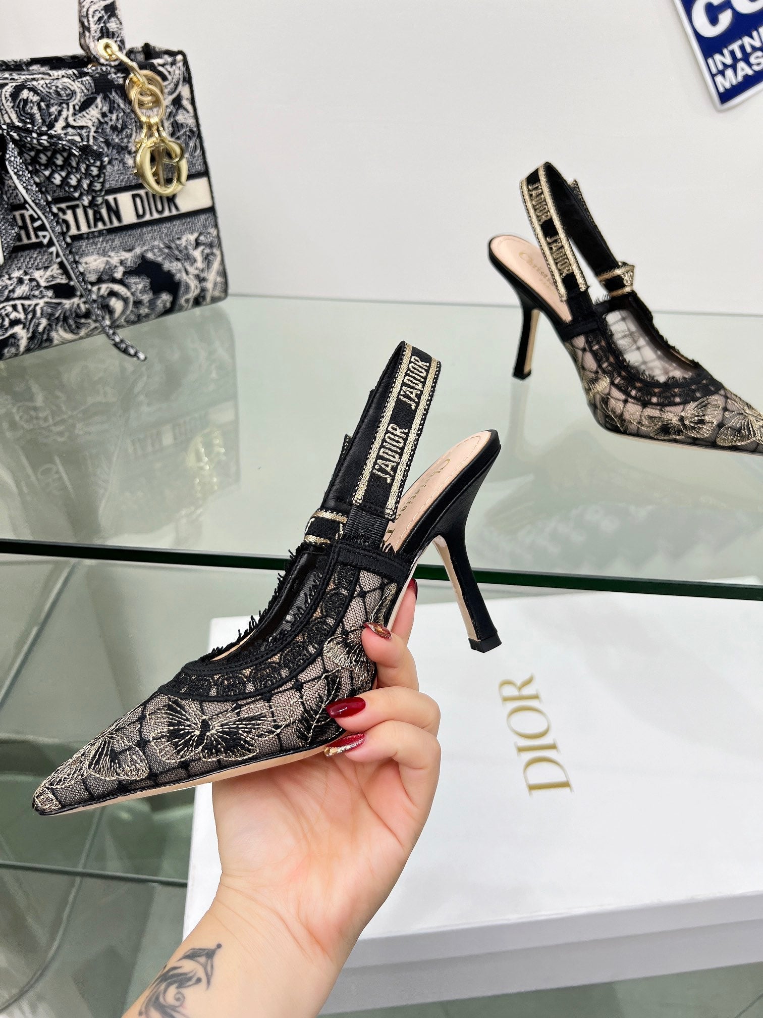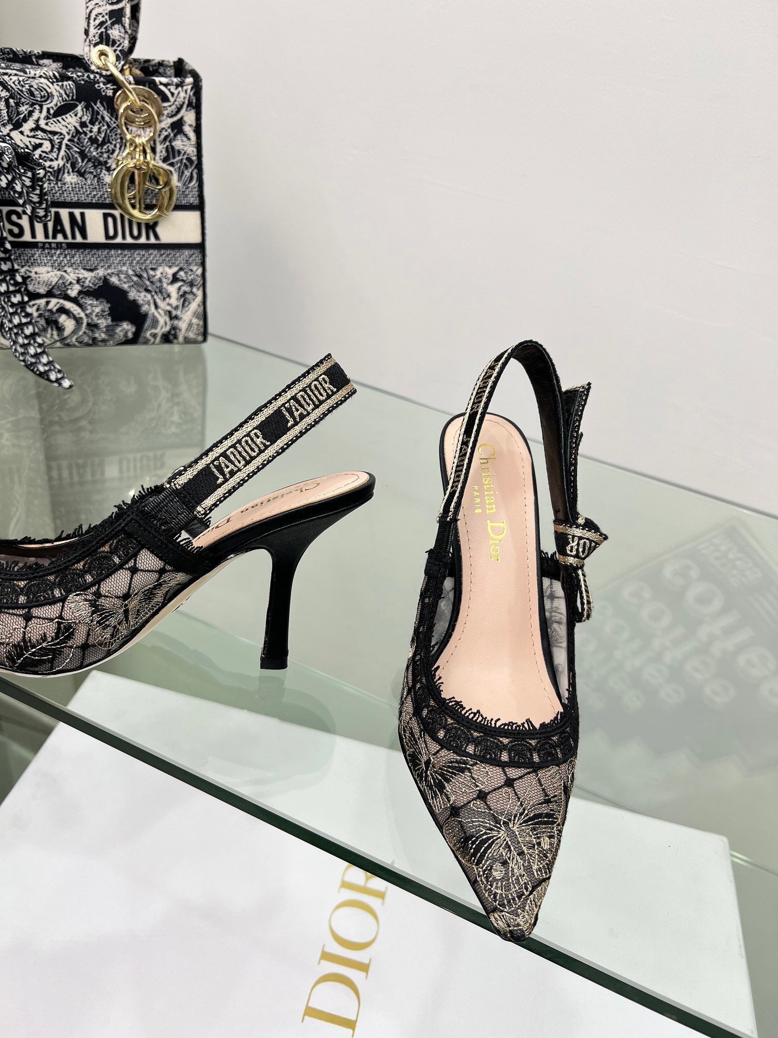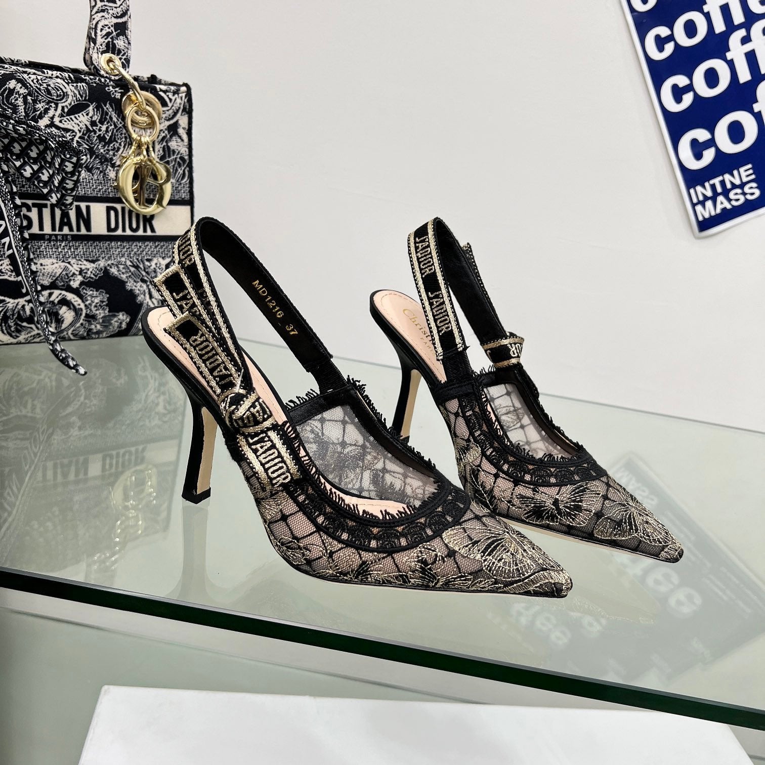 J'Adior Slingback Pump 95mm In Black Lace Fabric 100837