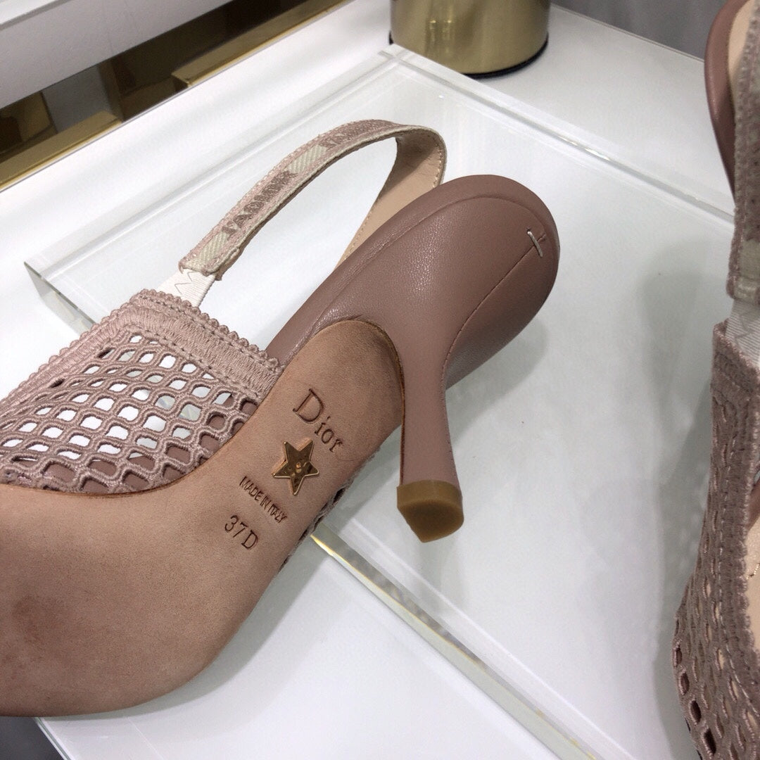 JAdior slingback pumps 95 transparent mesh rose cannelle embroidered cotton