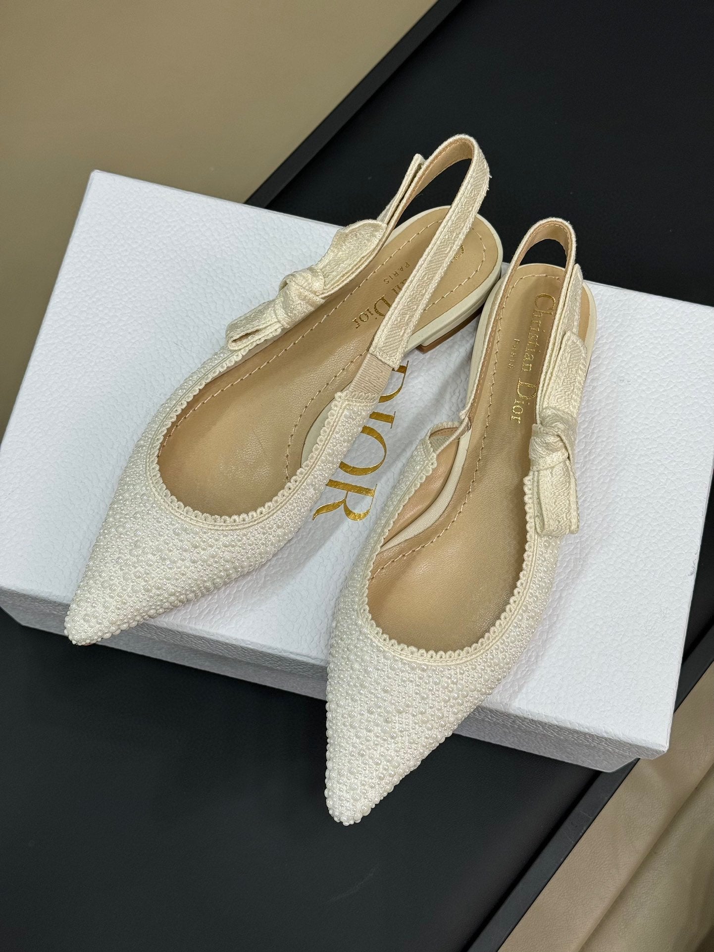 J'Adior Slingback White Cotton Microbeads