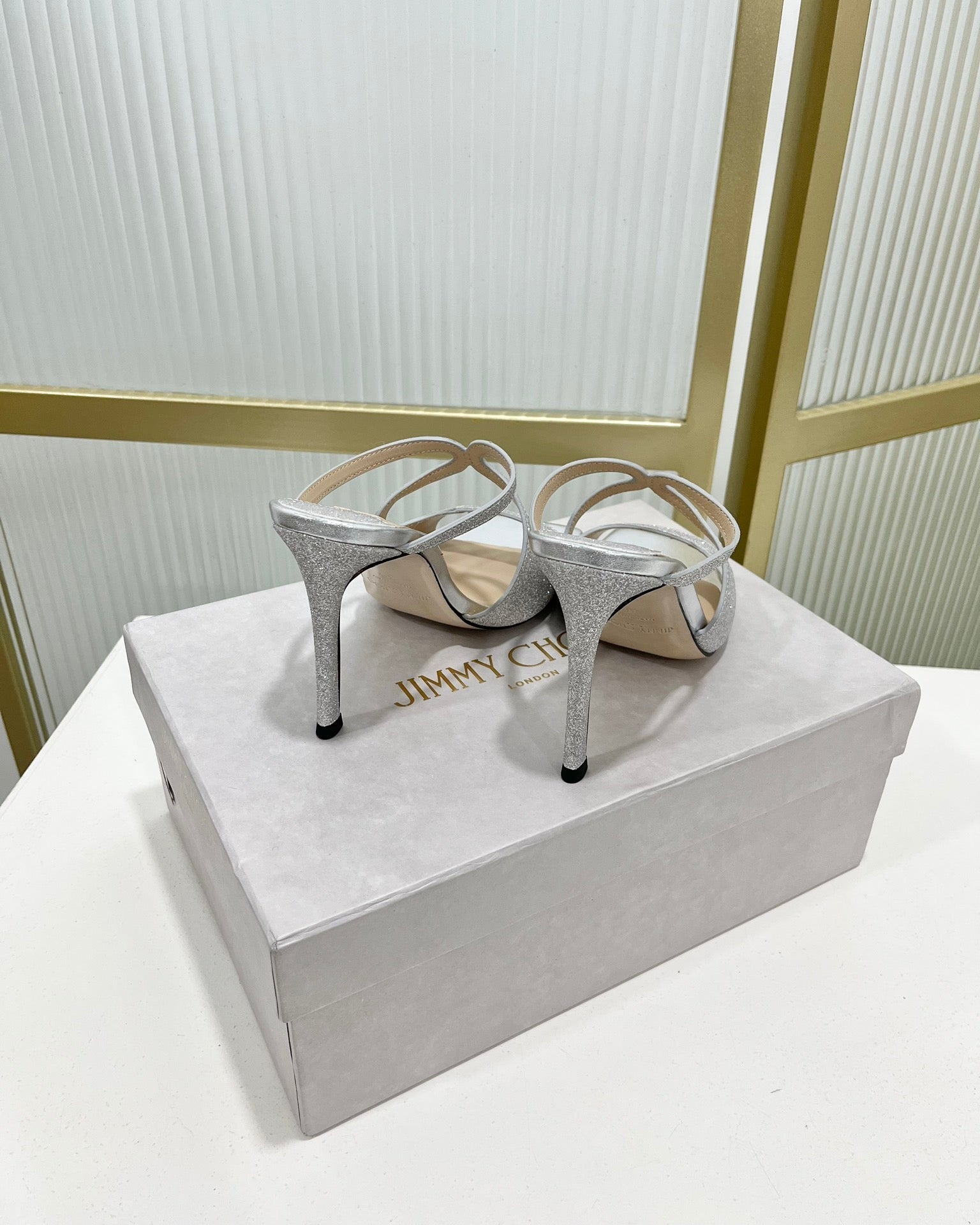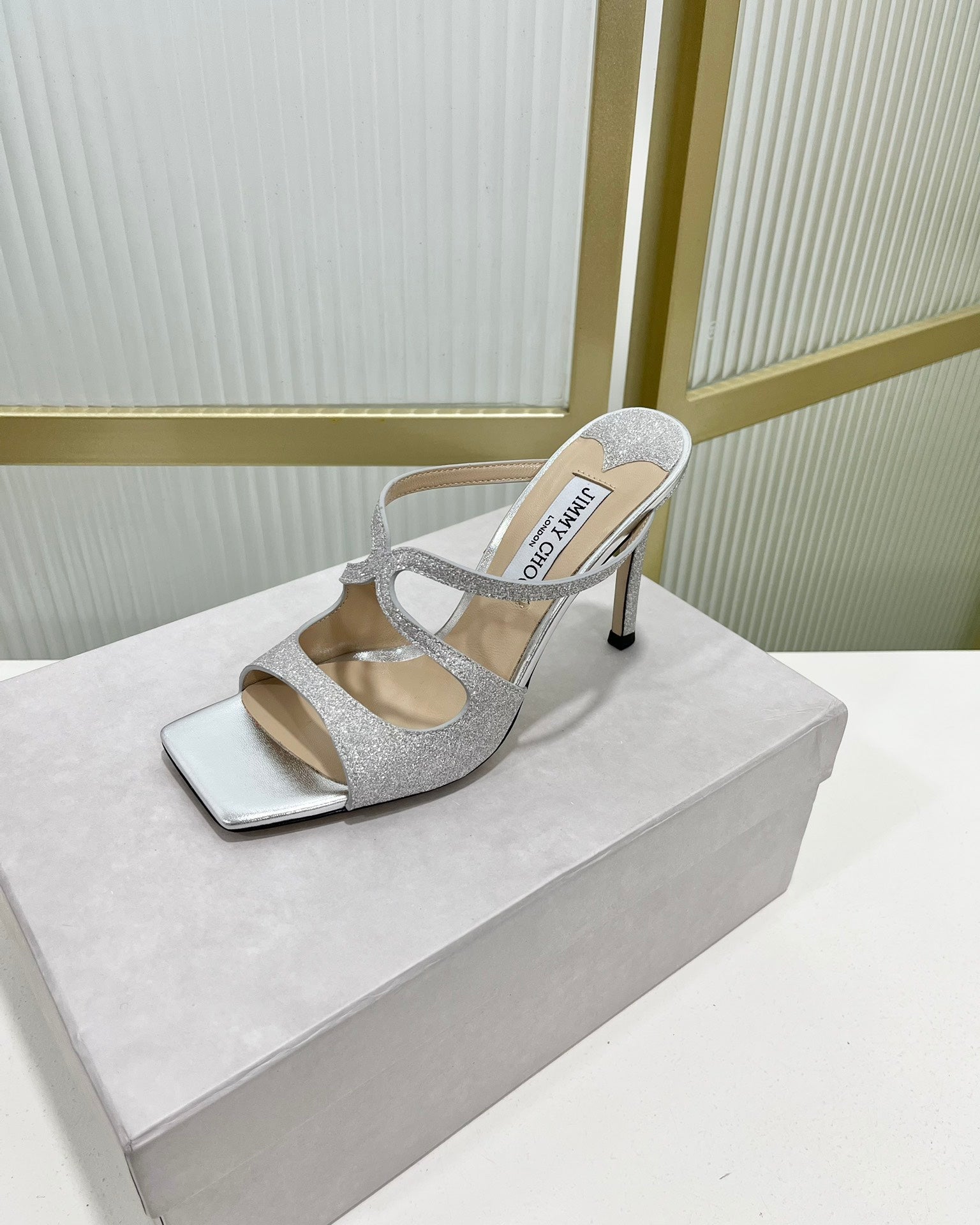 Jimmy Anise 85 In Silver Cowhide With Glitter Mules 587698