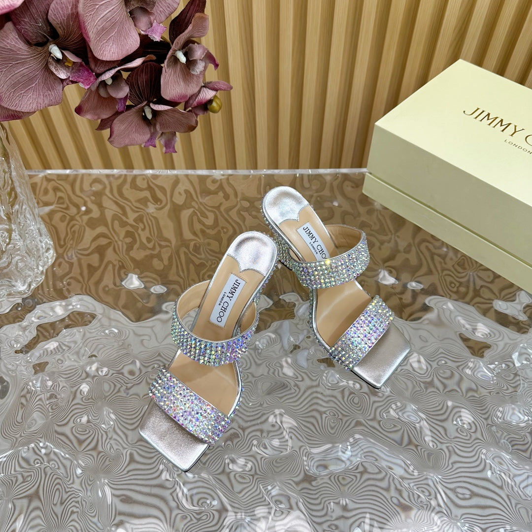 Jimmy High Sandal 105mm In Multicolor Lambskin With Stone 581543