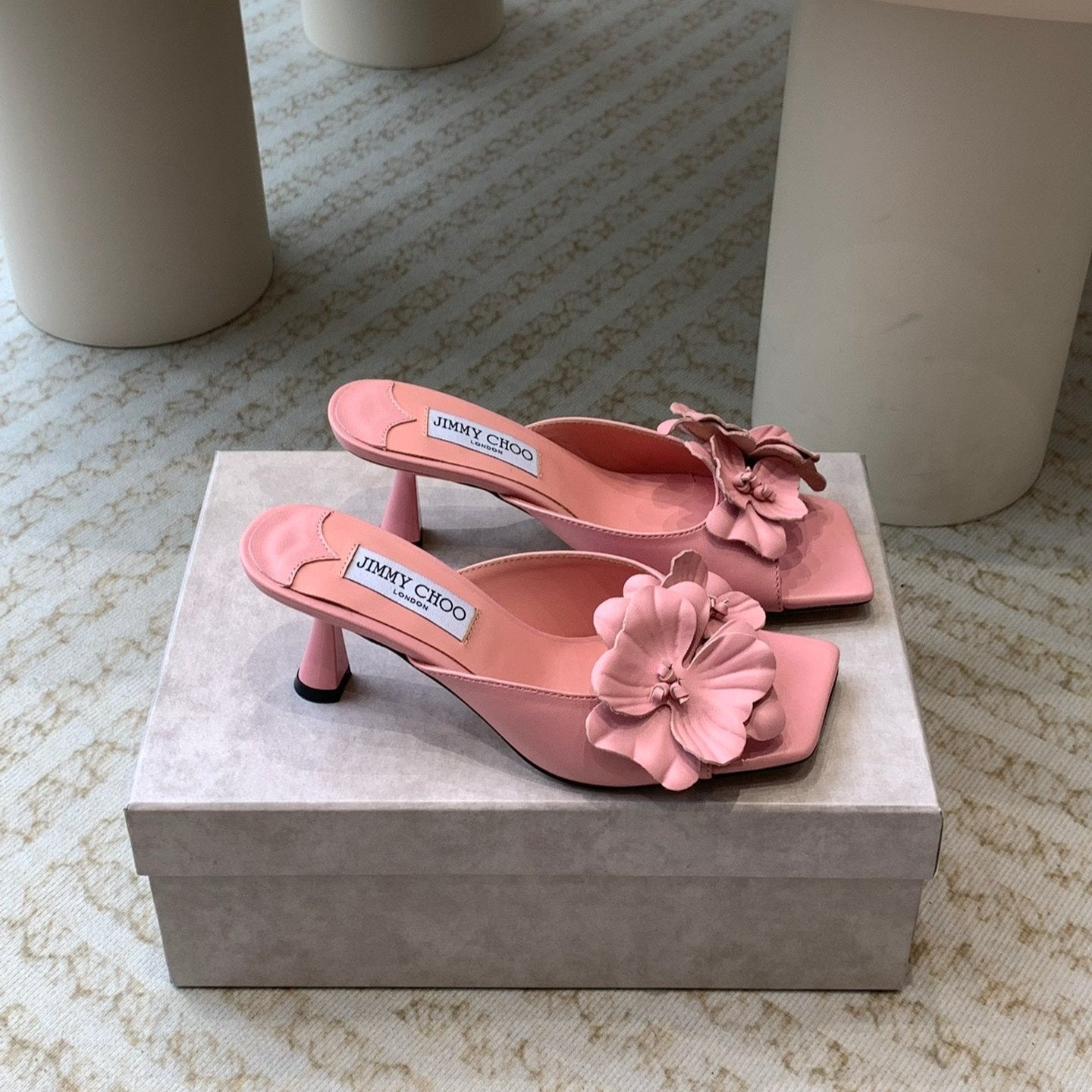Jimmy Skye 70mm In Pastel Pink Cowhide Mules 586567