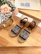 Loew Anagram Black White Beige Leather And Canvas Espadrille Sandals