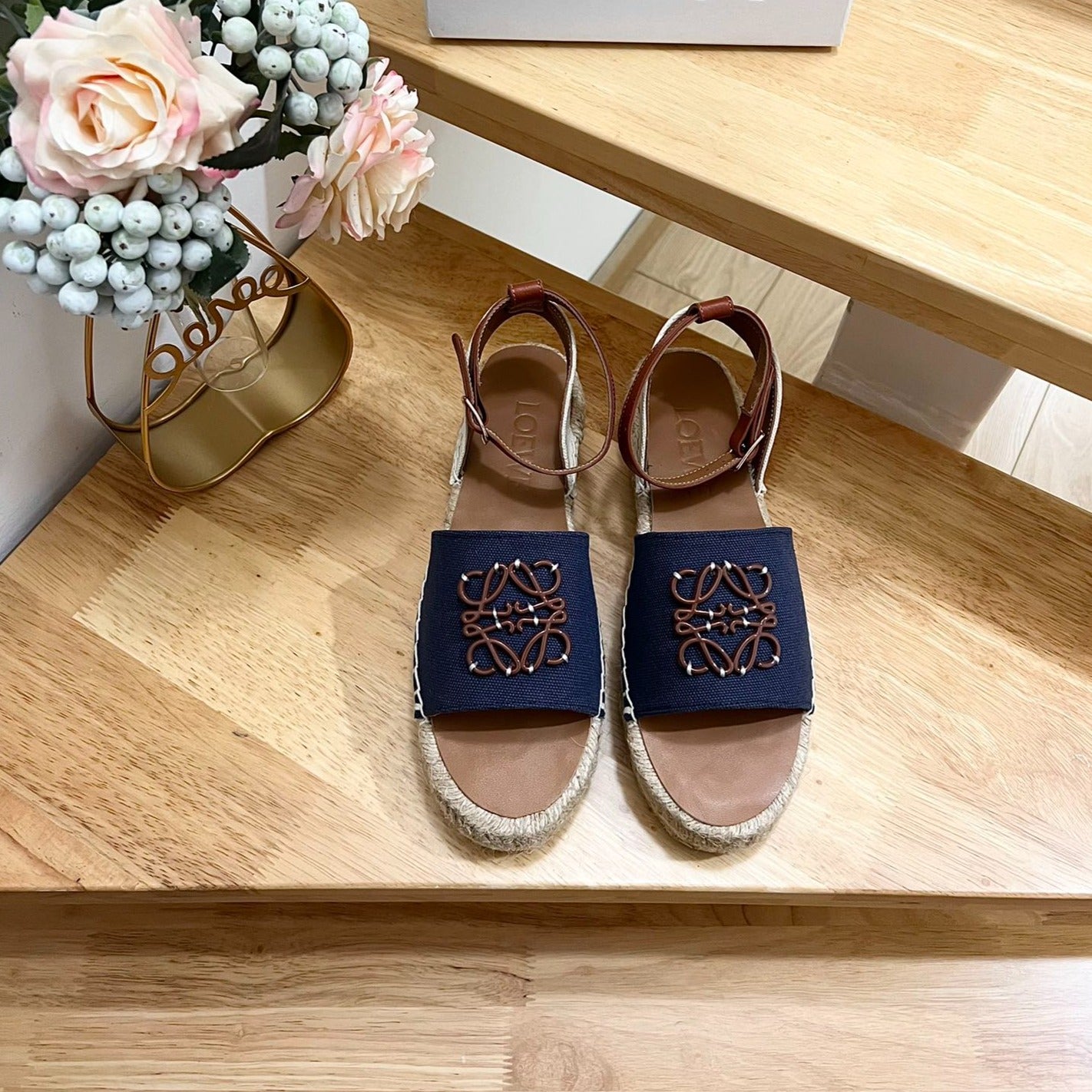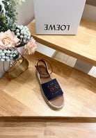 Loew Anagram Denim Brown Leather And Canvas Espadrille Sandals