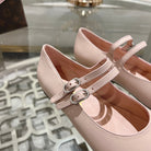 mary janes double buckle light pink calfskin black grosgrain