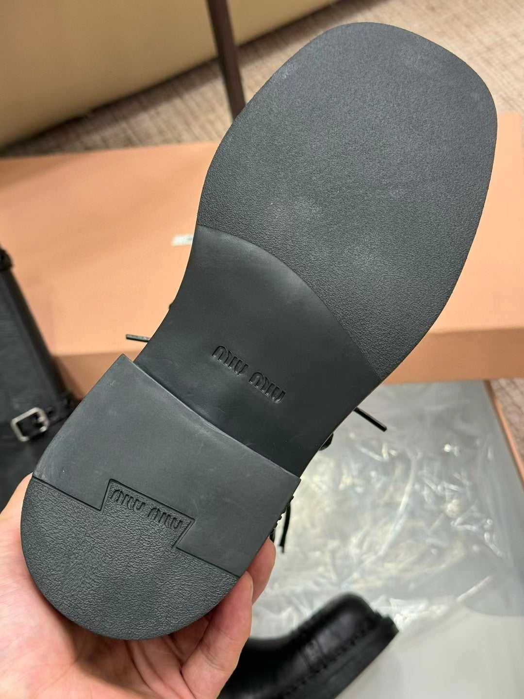 Miu Boots High Neck Black Paint Calfskin