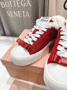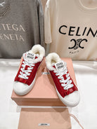 MiuMiu 25 Sneaker Red White Suede Cowhide Fur 535585