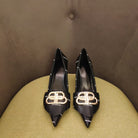 POINTED TOE PUMPS BLACK WITH LOGO PRINT SMOOTH CALFSKIN