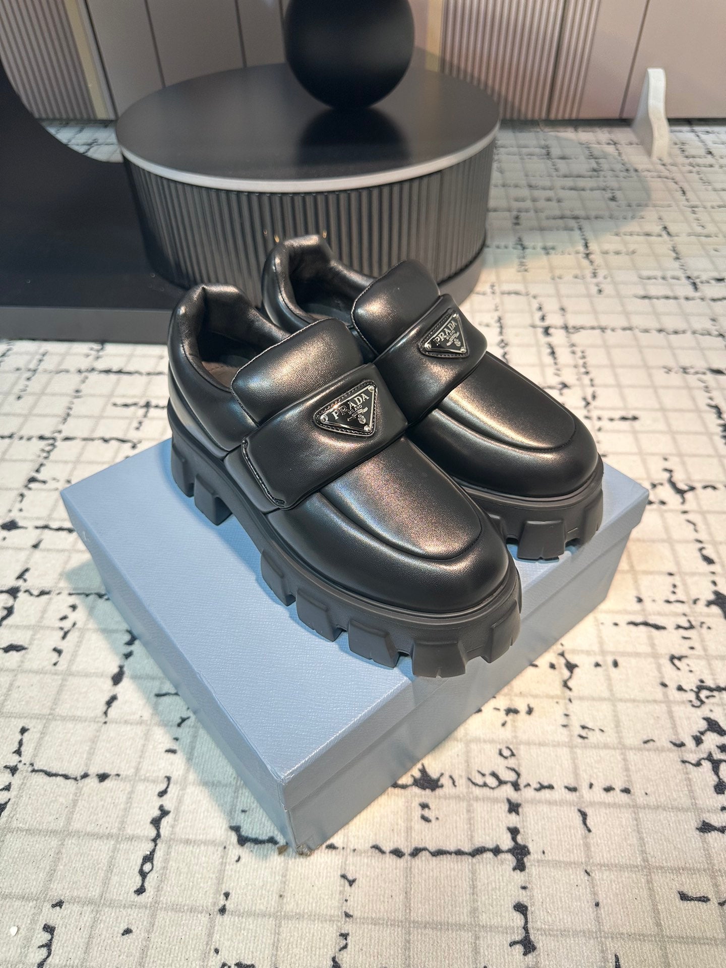 PRA BRUSHED MONOLITH LOAFERS BLACK LAMBSKIN