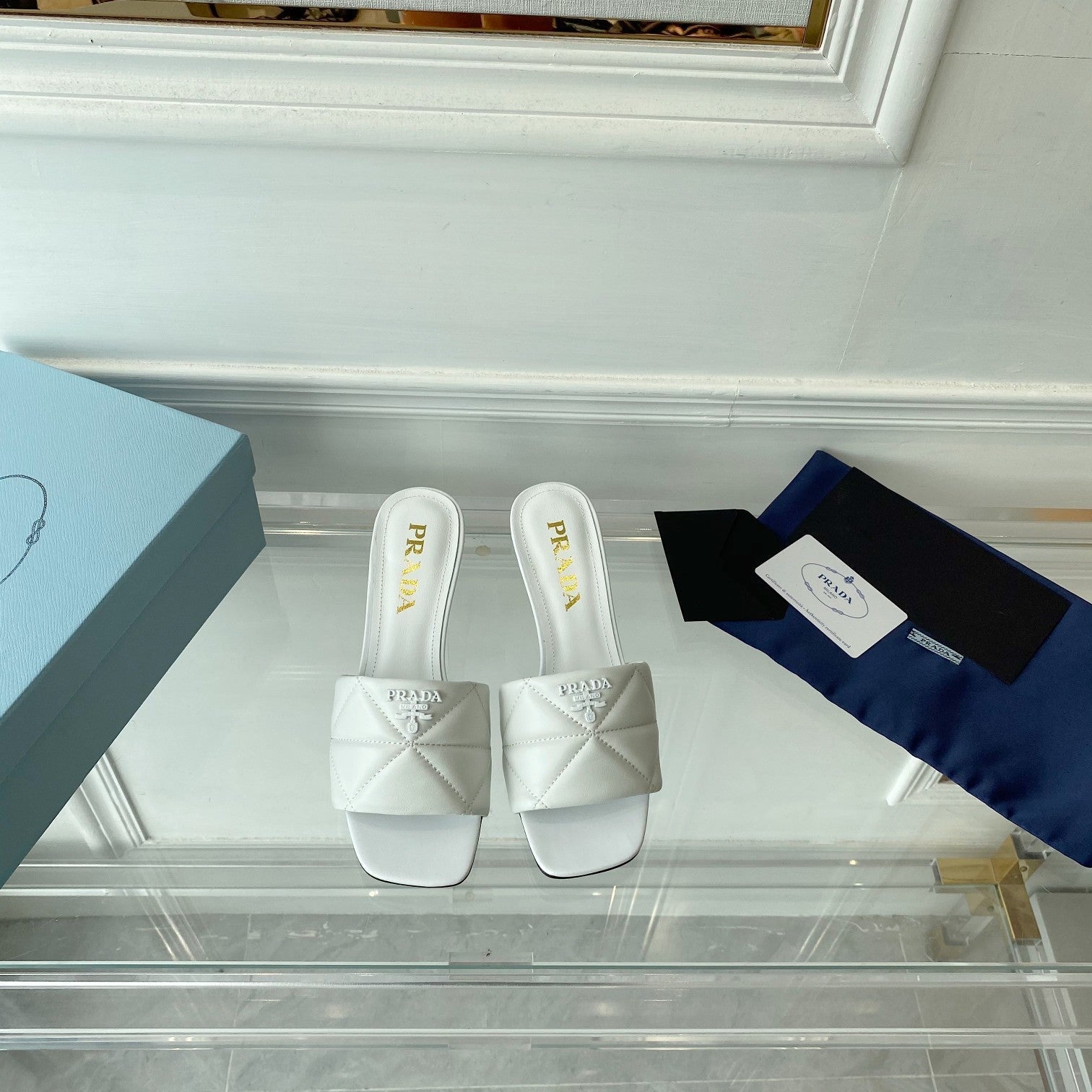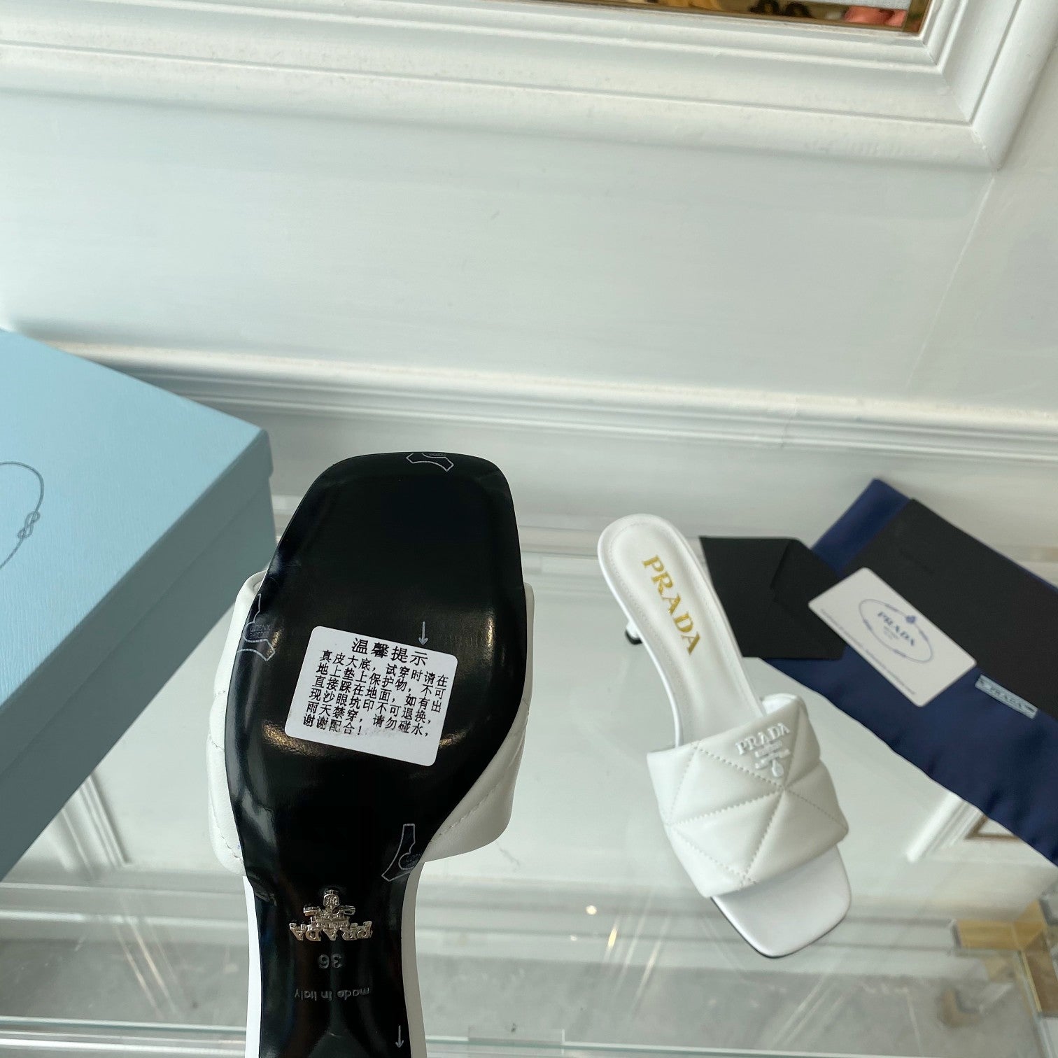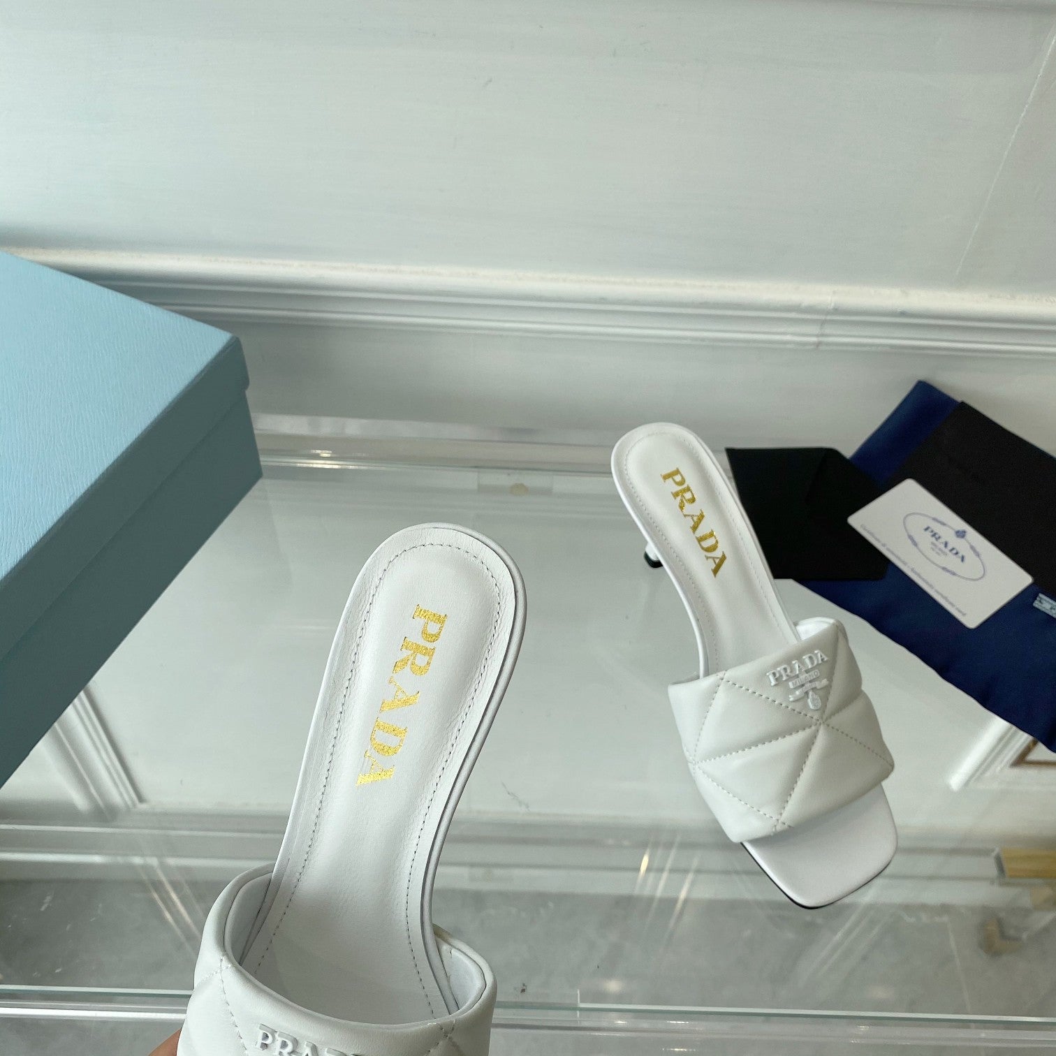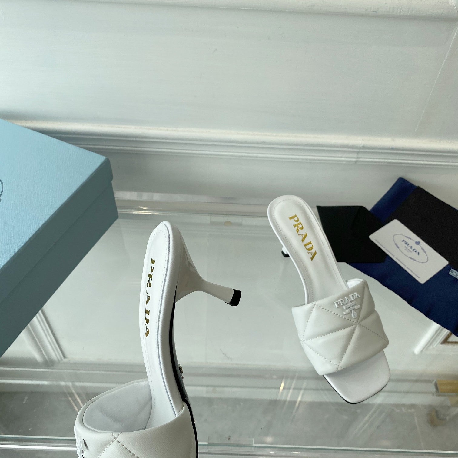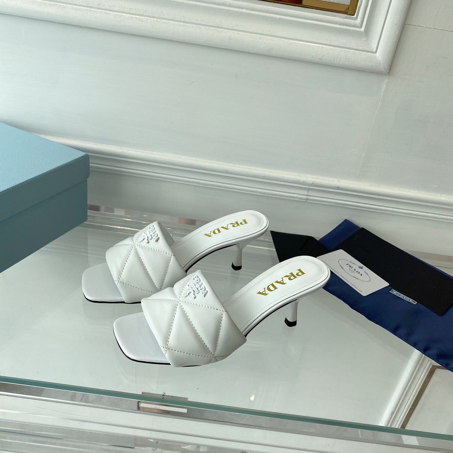 Pra Heeled Sandal 65 Pointed Sole Quilted White Leather
