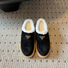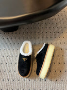 Prada 25s Furry Half-Cover Slippers Black Suede And Wool 538430