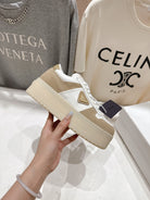 Prada 25s Platform Sneakers White Beige Calfskin And Suede 535494