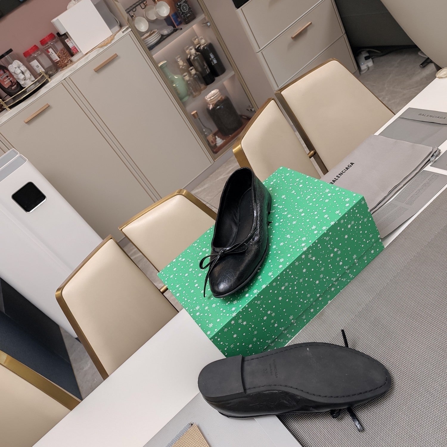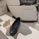 RHINESTONE BALLET FLATS WITH BOW IN BLACK WAX-OIL SHEEPSKIN