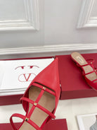 Rockstud Wispy Red Calfskin Mule 20mm