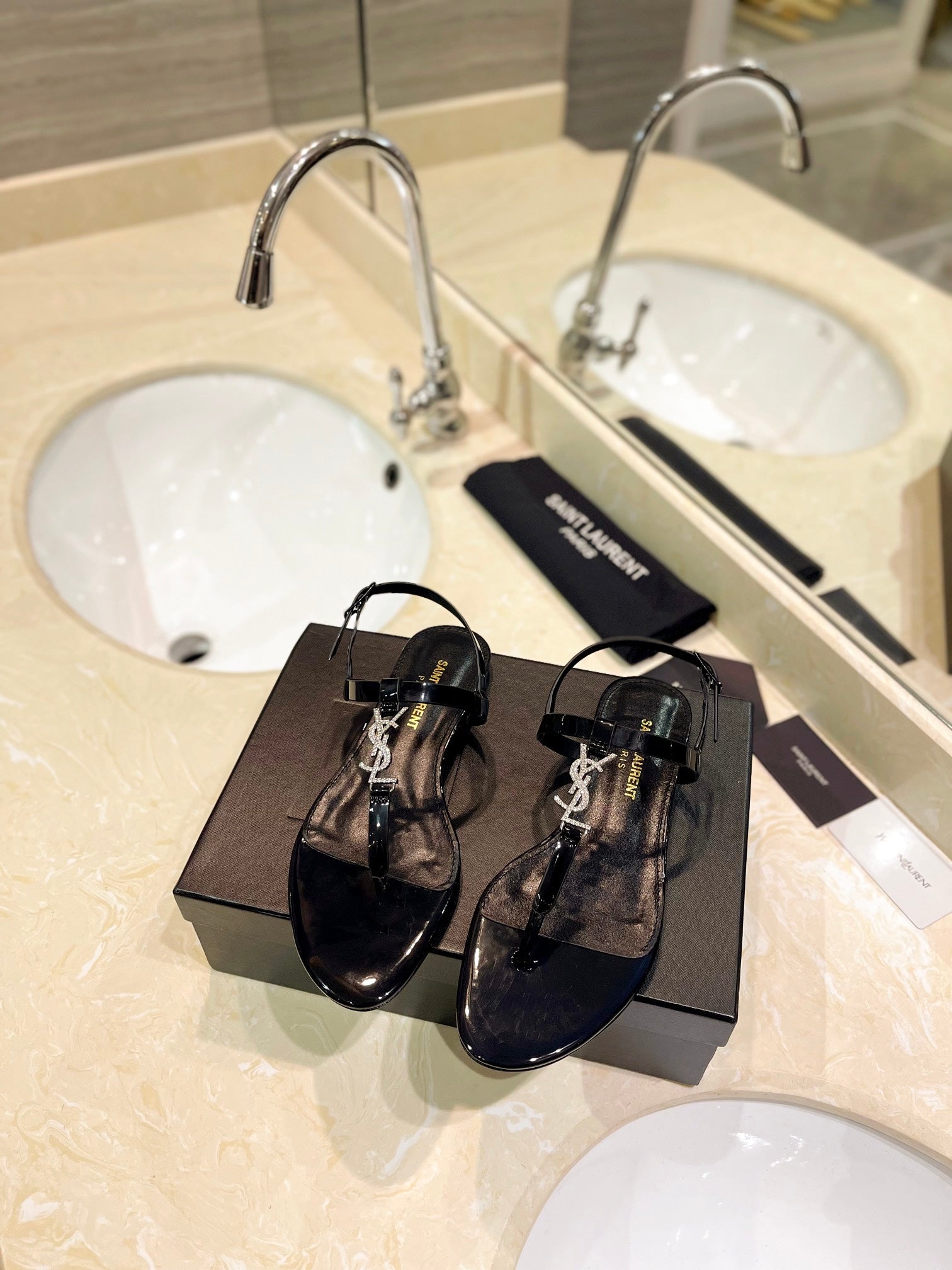 SL CASSANDRA SANDALS BLACK POLISHED CALFSKIN