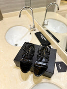 SL LOGO FLAT SANDALS BLACK POLISHED CALFSKIN