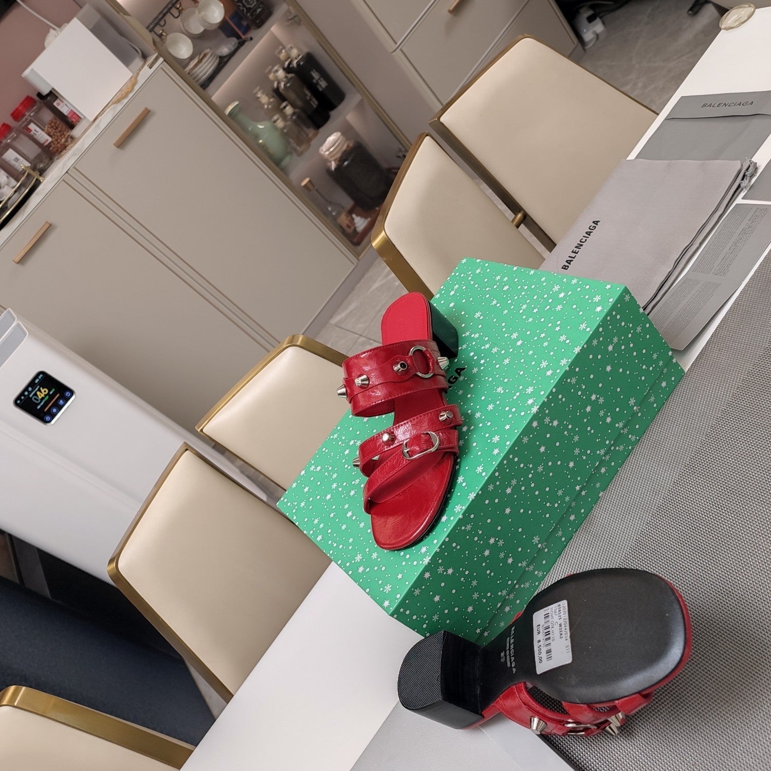 STRAPPY MEDIUM HEELED SANDALS IN RED STUDDED WAX-OIL SHEEPSKIN
