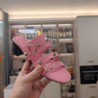 STRAPPY MEDIUM HEELED SANDALS IN WEWAK PINK STUDDED WAX-OIL SHEEPSKIN