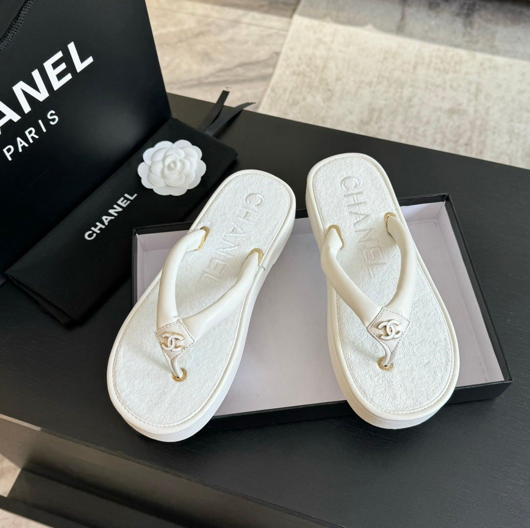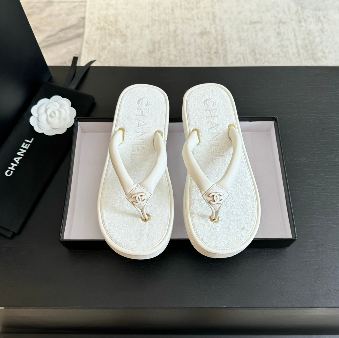 Thick-soled Flip-Flops Lambskin White