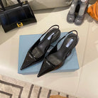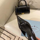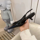 TRIANGLE LOGO SLINGBACK PUMPS IN BLACK GLOSSY CALFSKIN