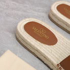 Vlogo Cut-Out Slide 20 Tan Calfskin Beige Sole Raffia