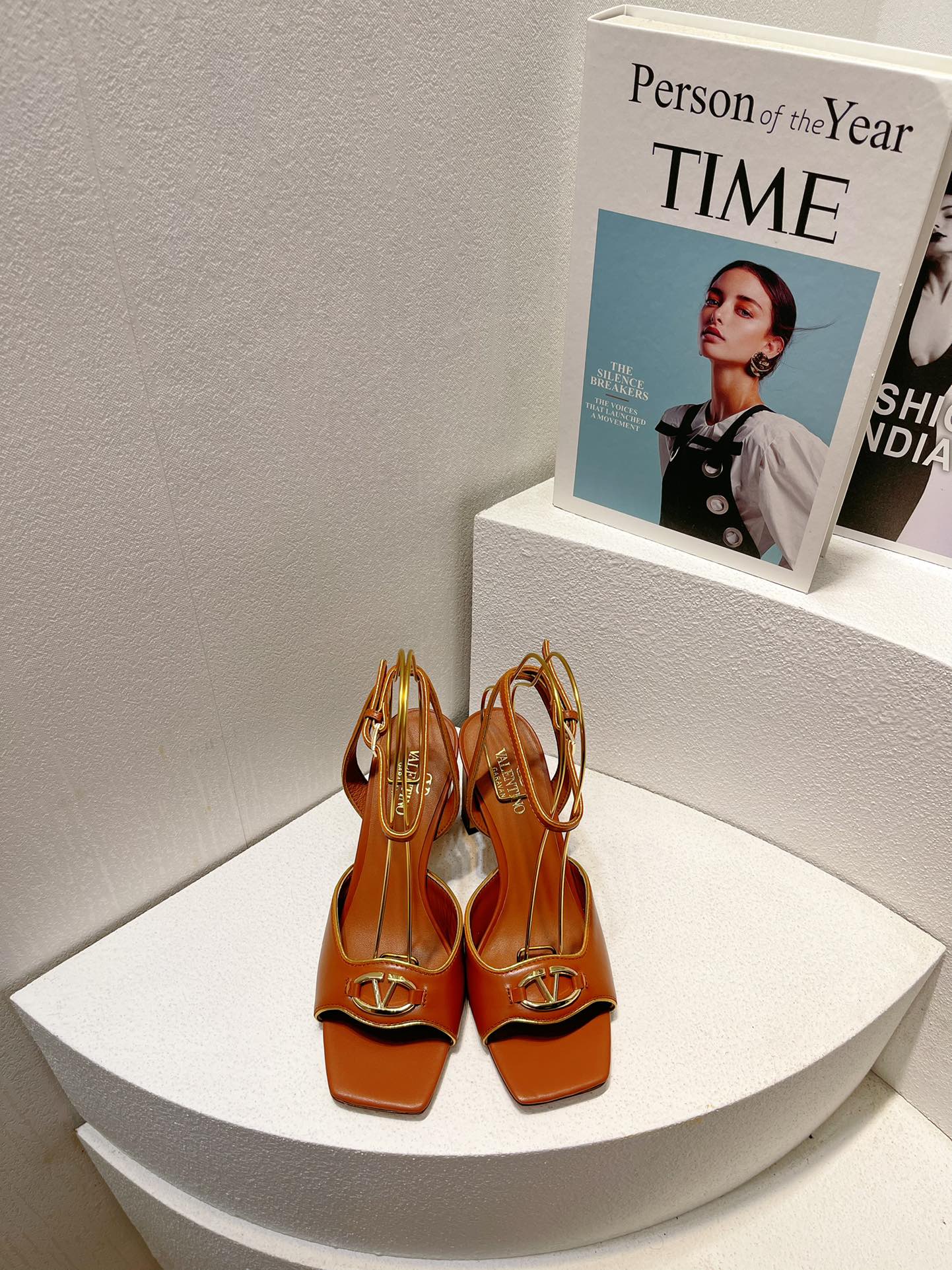 VT Sandals Heels 70mm Brown Cowhide 292783