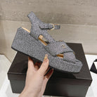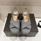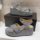 Wedge Open-Toe High Heel Sandals Slate Gray Sheepskin