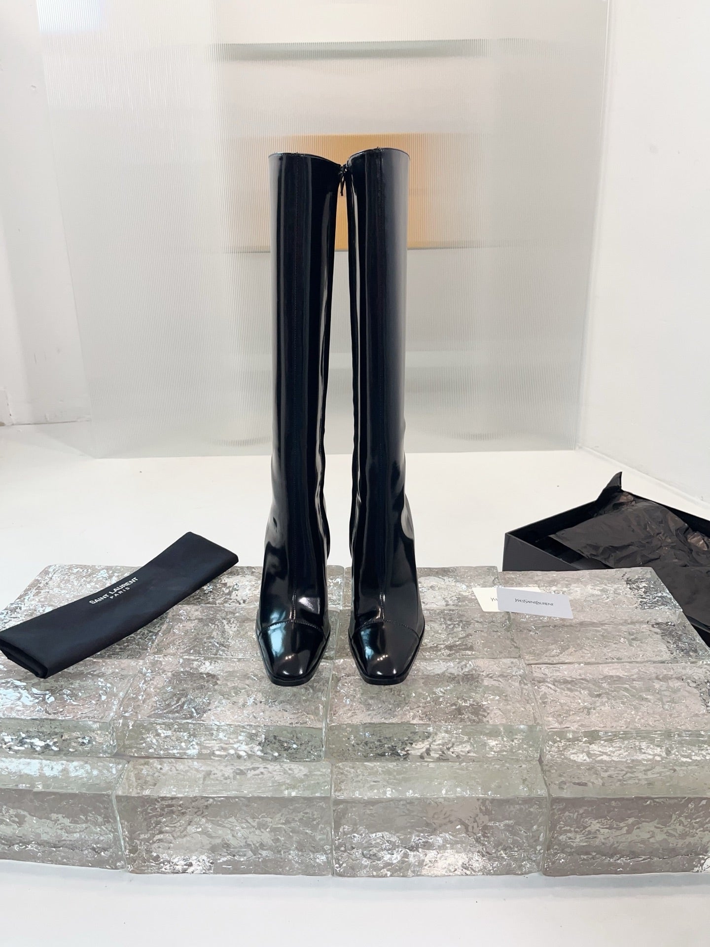 YSL 25 Long Boot Black Cowhide 522268