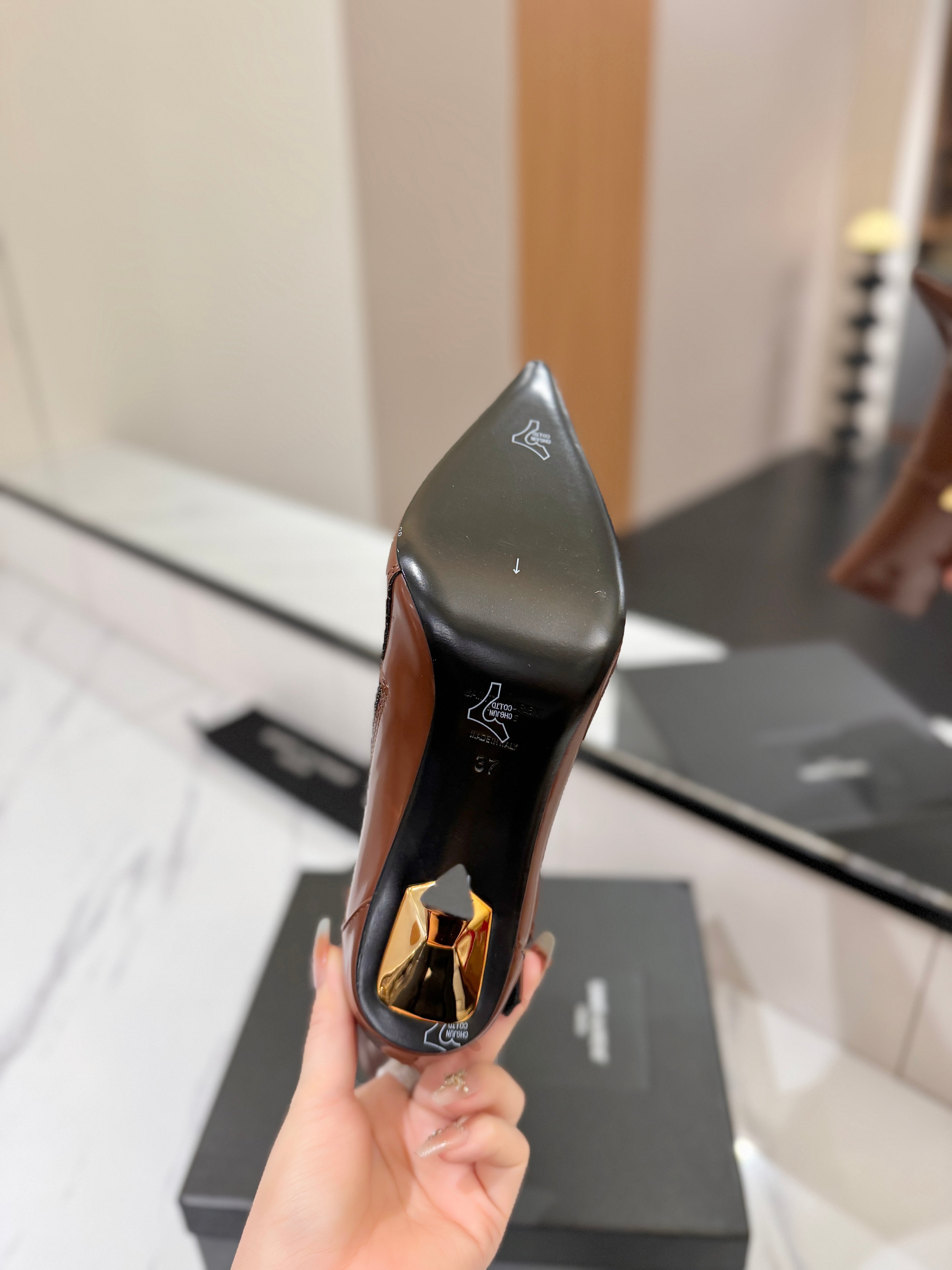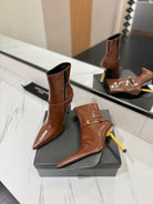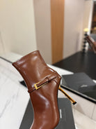 YSL 25 Metal Stiletto Martin Boots Brown Gold Cowhide 520780