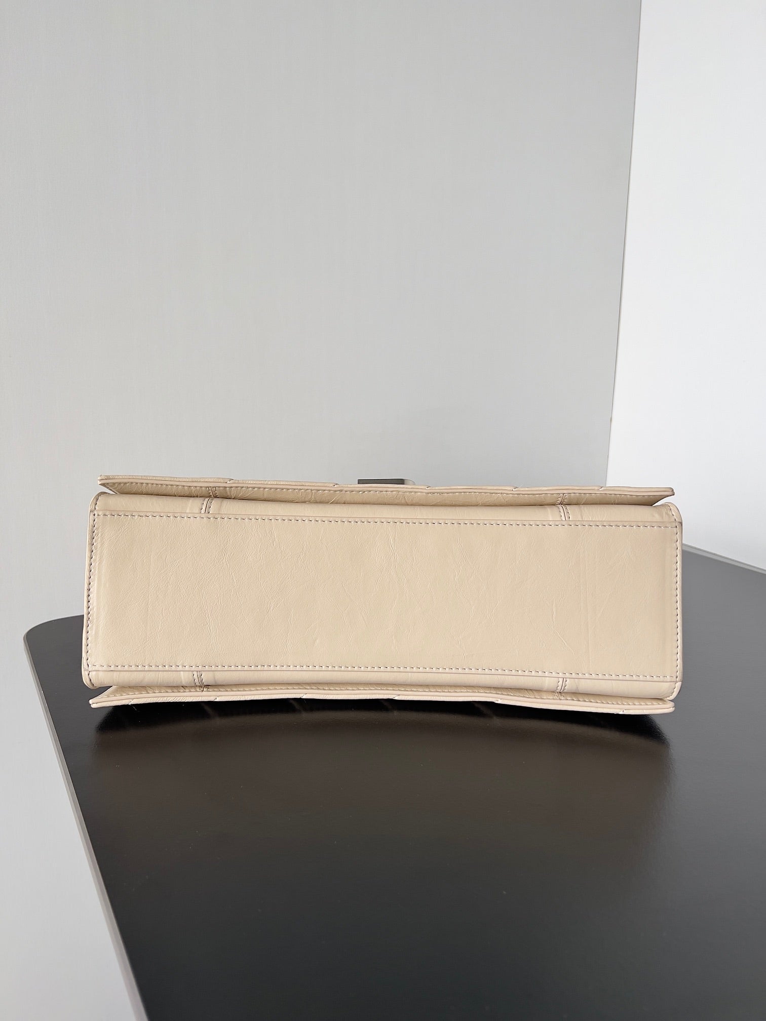 CRUSH CHAINED BAG 32 IN BEIGE QUILTED LAMBSKIN SILVER HARDWARE