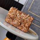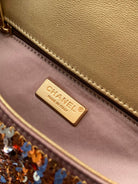Flap Bag Mini 20cm Beige Calfskin Gold Bronze Sequin