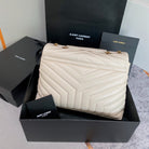 LOULOU MEDIUM 32 WHITE QUILTED LEATHER GOLD HARDWARE