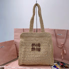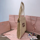 miu tote bag 38cm beige woven fabric