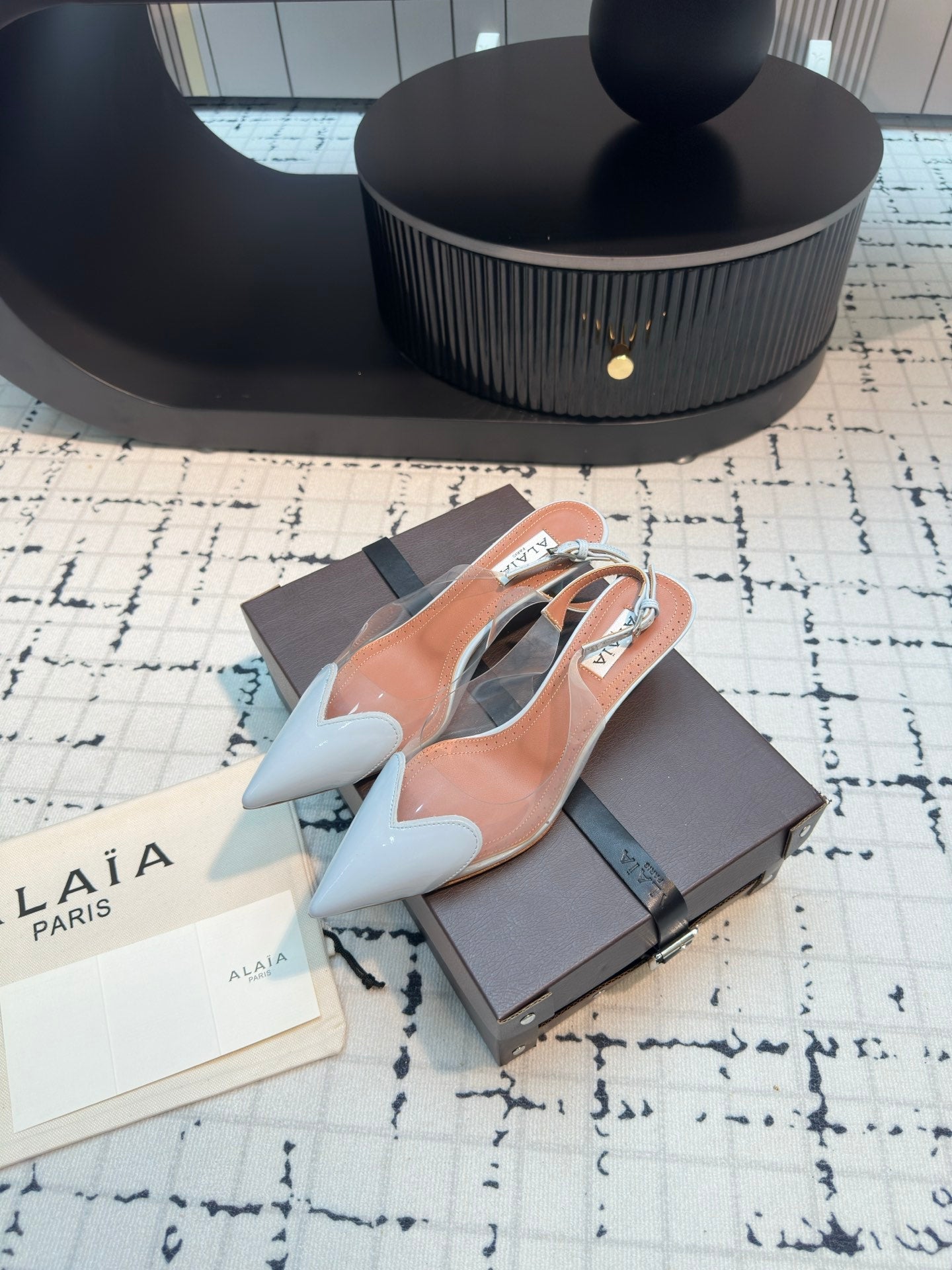 Alaia Heart 50mm Heels Slingbacks Blue Sheepskin 810208
