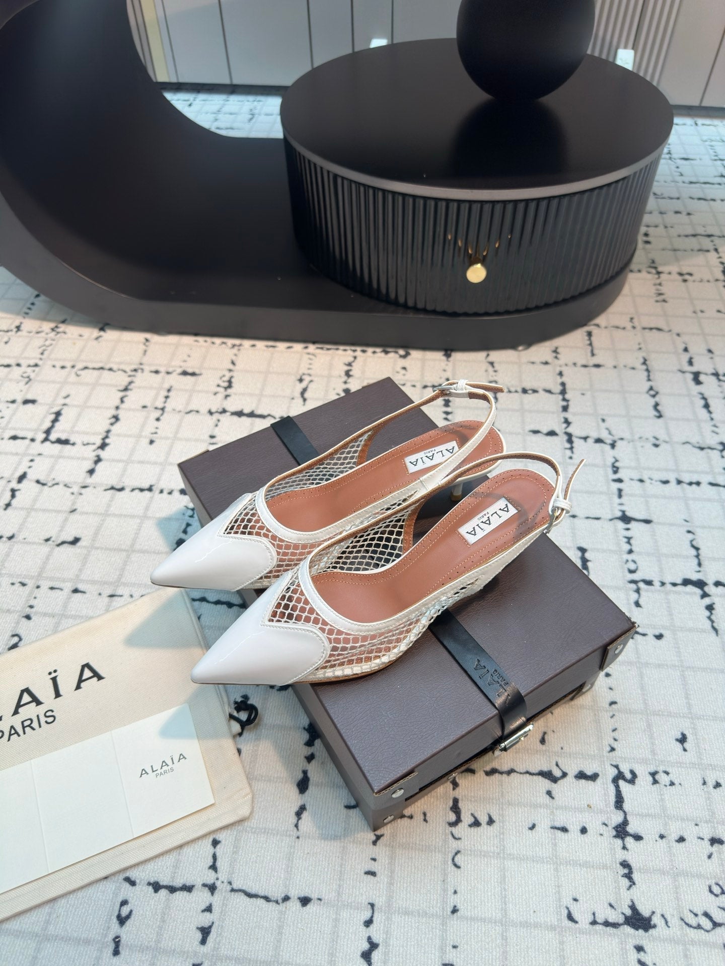 Alaia Heart 50mm Heels Slingbacks White Sheepskin 800931