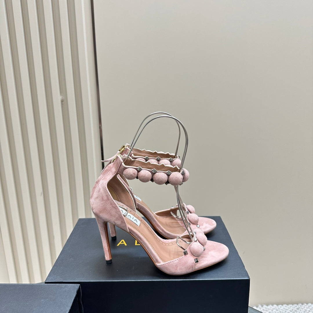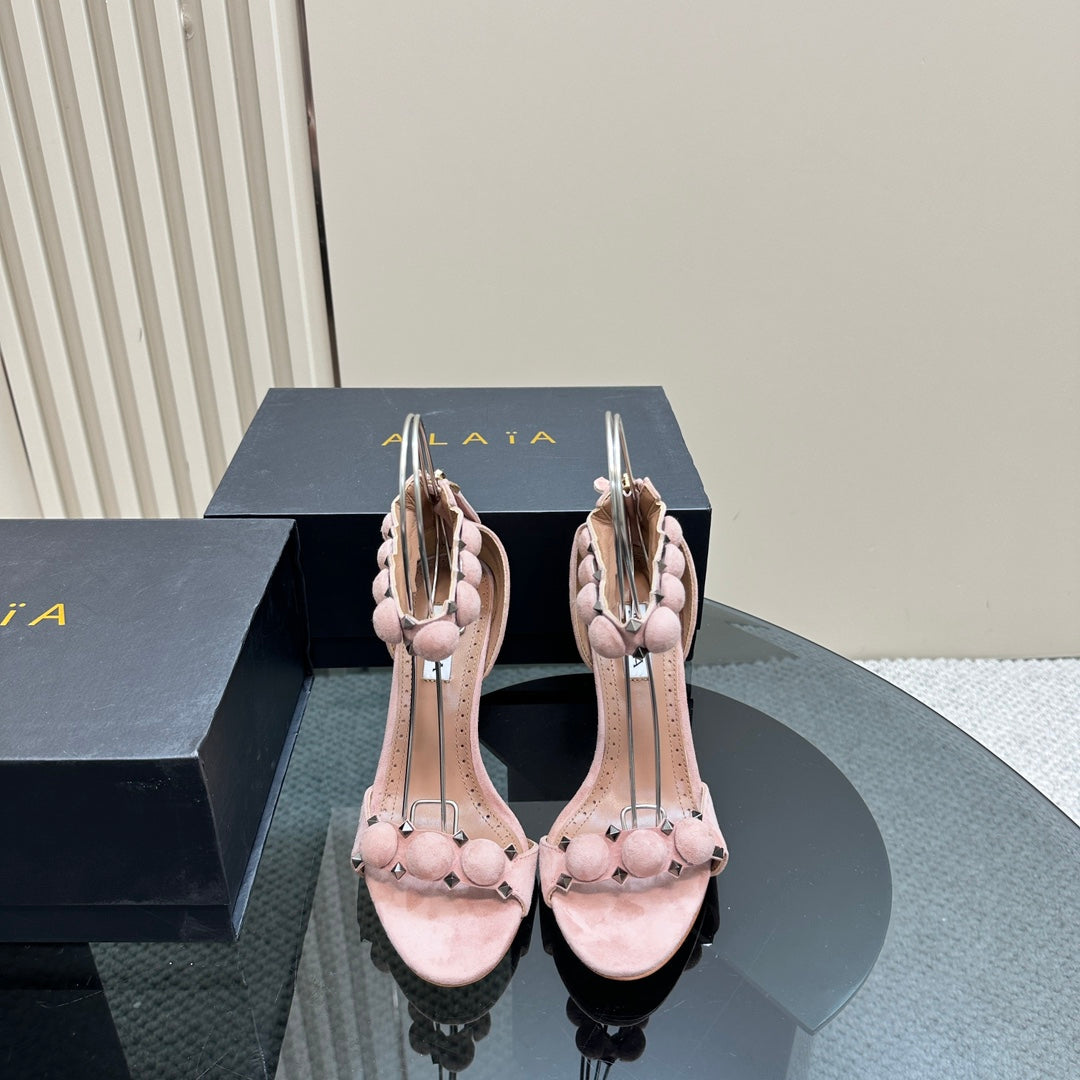 ALAIA HIGH HEEL SANDAL 10 CM IN LIGHT PINK SUEDE