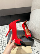 ALAIA HIGH PUMPS 10CM IN CHERRY RED SUEDE MIX BLACK CALFSKIN