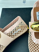 ALAIA MARY JANE SHOES IN BEIGE MESH WITH GOLD HARDWARE