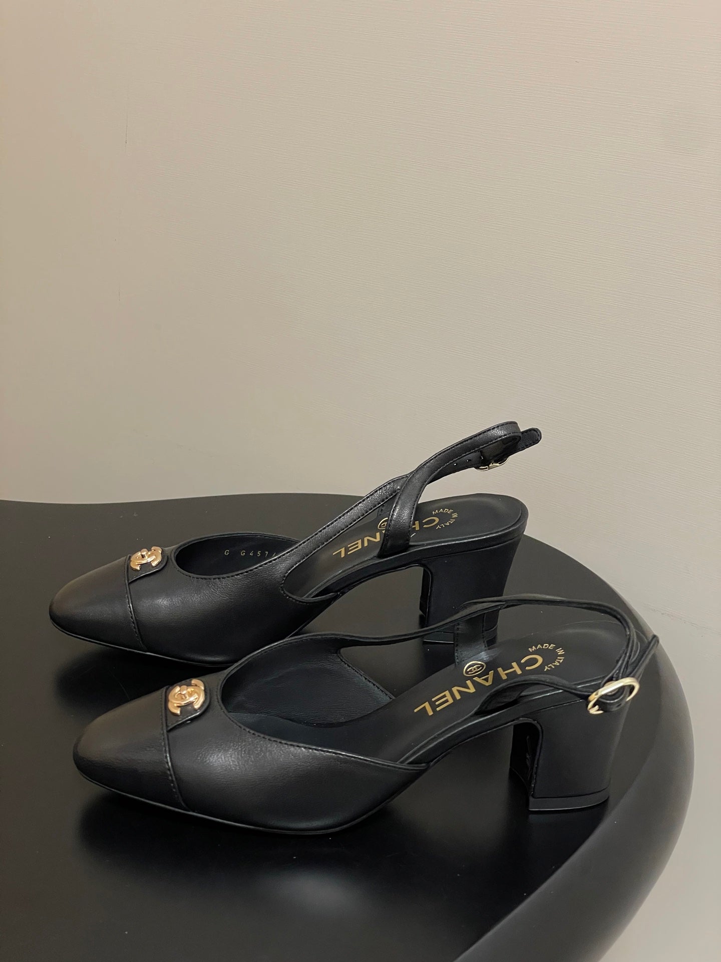 Chanel 25 Slingback 50mm Black Lambskin 473218