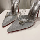 CL Marykate Queen 100MM Pumps Crystal-Embellished Glitter Silver