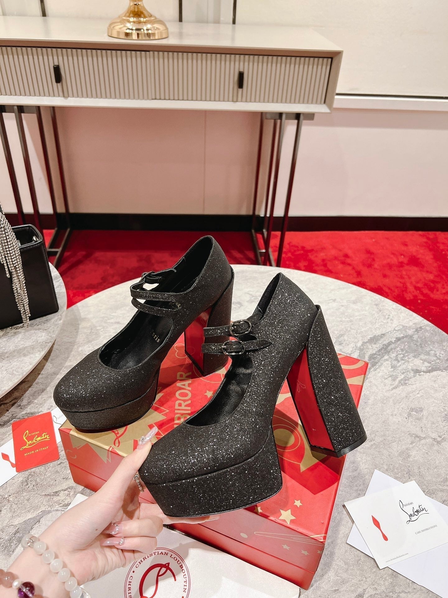 - Material: Glitter Leather
