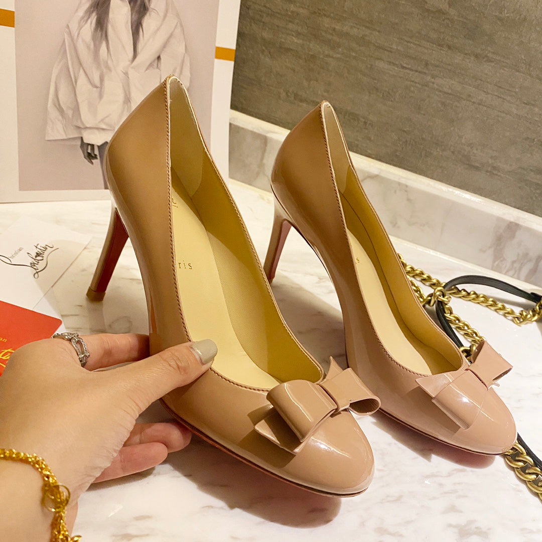 CL Simplenodo Bow Pumps 85mm Patent Leather Nude