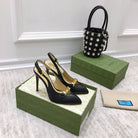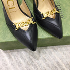 GG HIGH HEEL SLINGBACK BLACK CALFSKIN WITH CHAIN